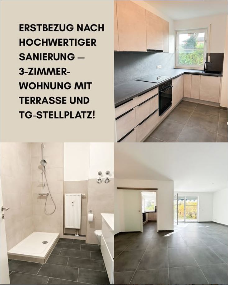 Neues Mietobjekt! Hochwertige Sanierung! 3-Zimmer-Wohnung mit Terrasse und TG-Stellplatz!